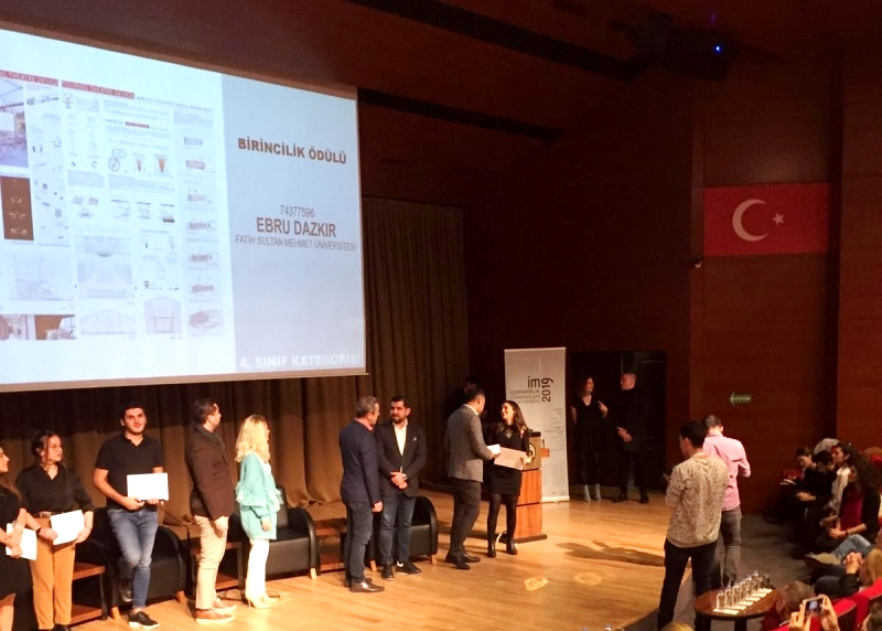TMMOB İç Mimarlar Odası İstanbul Şubesi’nin şemsiyesi altında bir iç mimarlık bölümünün ev sahipliğinde her yıl düzenlenen im 2019 İç Mimarlık Öğrencileri Proje Yarışması’nda İç Mimarlık Bölümü mezunumuz Ebru Dazkır en iyi projenin, Fatmanur Çavuşoğlu da mansiyon ödülünün sahibi oldu.