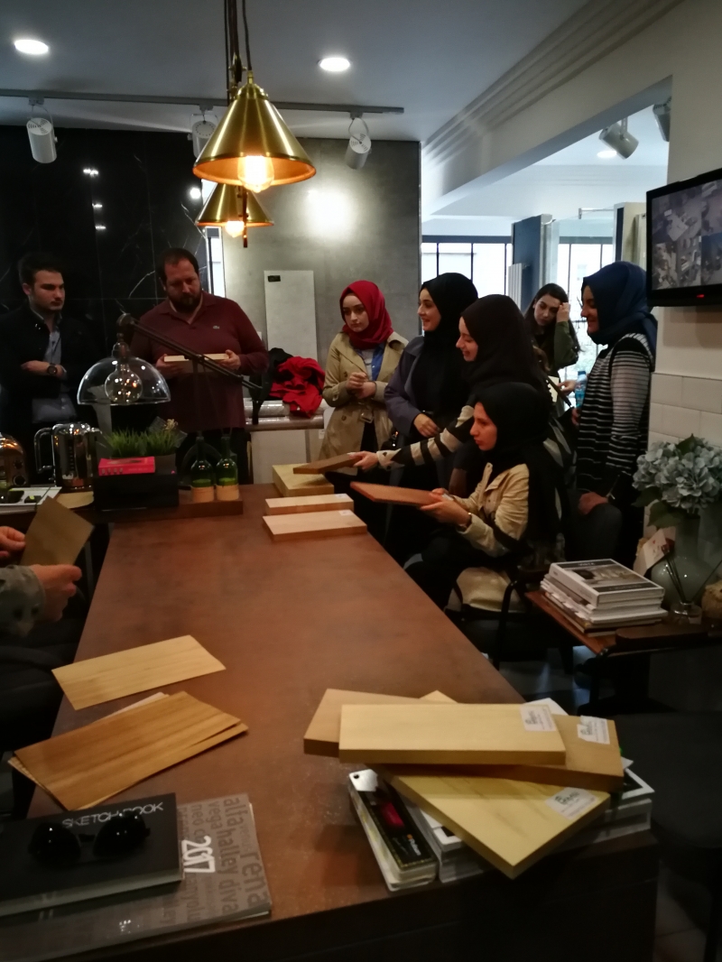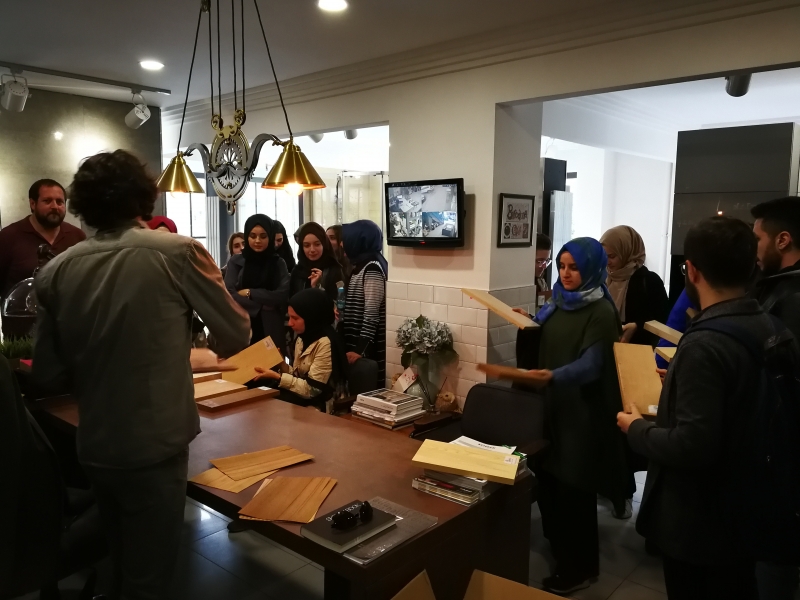 İç Mimari Tasarımda Malzeme ve Uygulama Teknikleri dersi kapsamında Bölüm Başkan Yardımcımız Yrd. Doç. Dr. Salih Salbacak eşliğinde Kent Yapı İstanbul İç Mimarlık Ofisine teknik gezi düzenlendi. Teknik gezi kapsamında ofis yetkilileri Y. İç Mimar Umay Yılmaz Arer ve Y. İç Mimar Mithat Arer tarafından malzeme ve uygulama teknikleri konusunda sunum ve ürün tanıtımı yapıldı.
