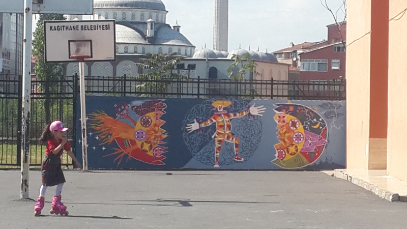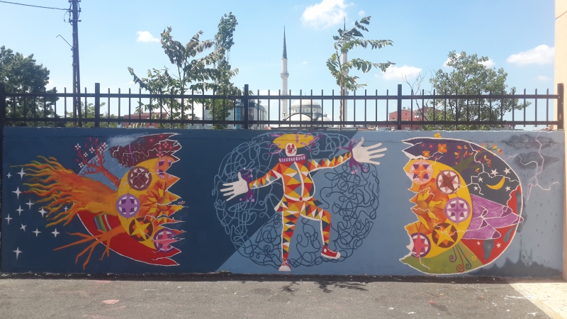 Okmeydanı Tülin Manço İlkokulu'ndan gelen talep doğrultusunda, Fakültemizin değerli hocalarından Hasan Fırat Diker ve öğrencilerinden Atakan Şengüler ile Elif Kartal’ın bizzat okula giderek öğrencilerle yapmış oldukları duvar resimleri hepimizi çok duygulandırmıştır. Duvar üzerine yapılan Kolaj çalışması tüm öğrencilerin yapmış oldukları resimlerden oluşmuştur.
